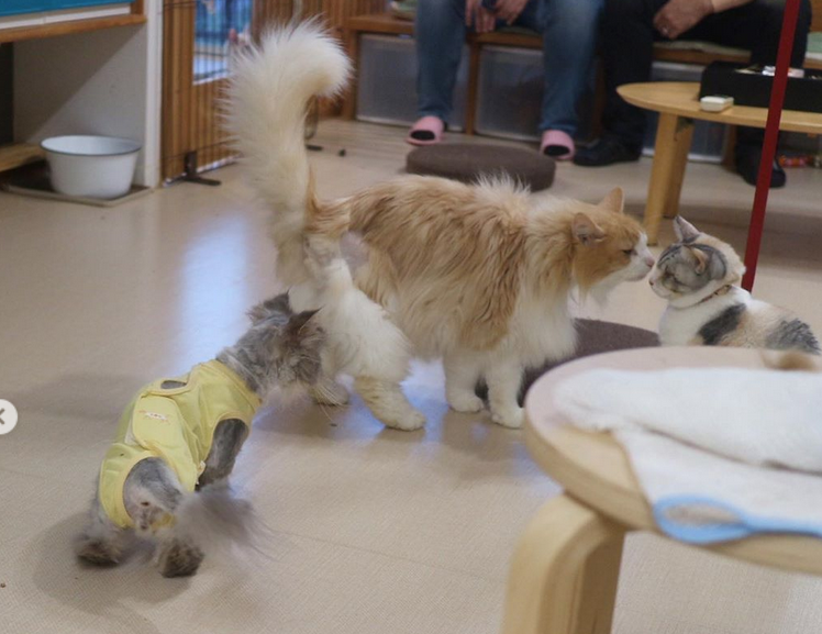 譲渡会場でのお見合いではなく、日常暮らしている猫の幼稚園でのお見合いなので、