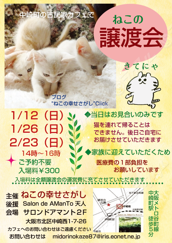 大阪市北区猫の譲渡会」「ねこの幸せさがし」