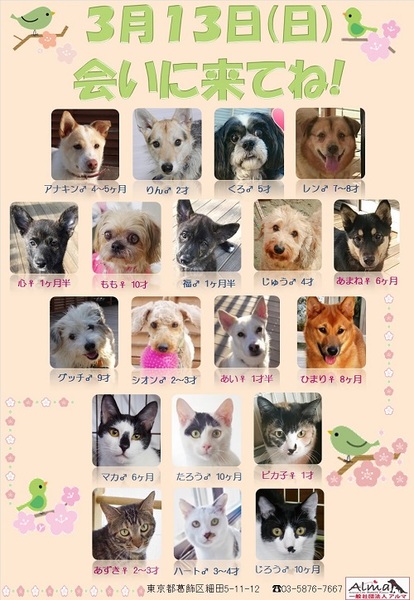 関東圏の動物愛護センターから引取した犬猫たちが、新しい家族との出会いを待っています。