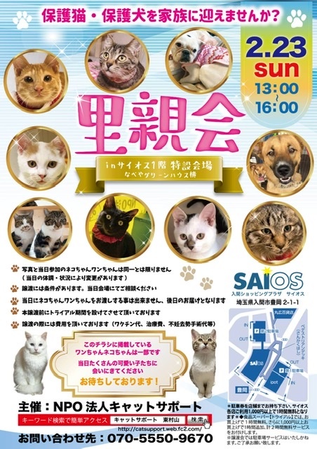 センター収容犬猫の里親会です。行き場のなくなった犬猫の里親様を探しております。①ペット可の住宅であること②完全室内飼いをしてくださること③終生飼育をしてく...