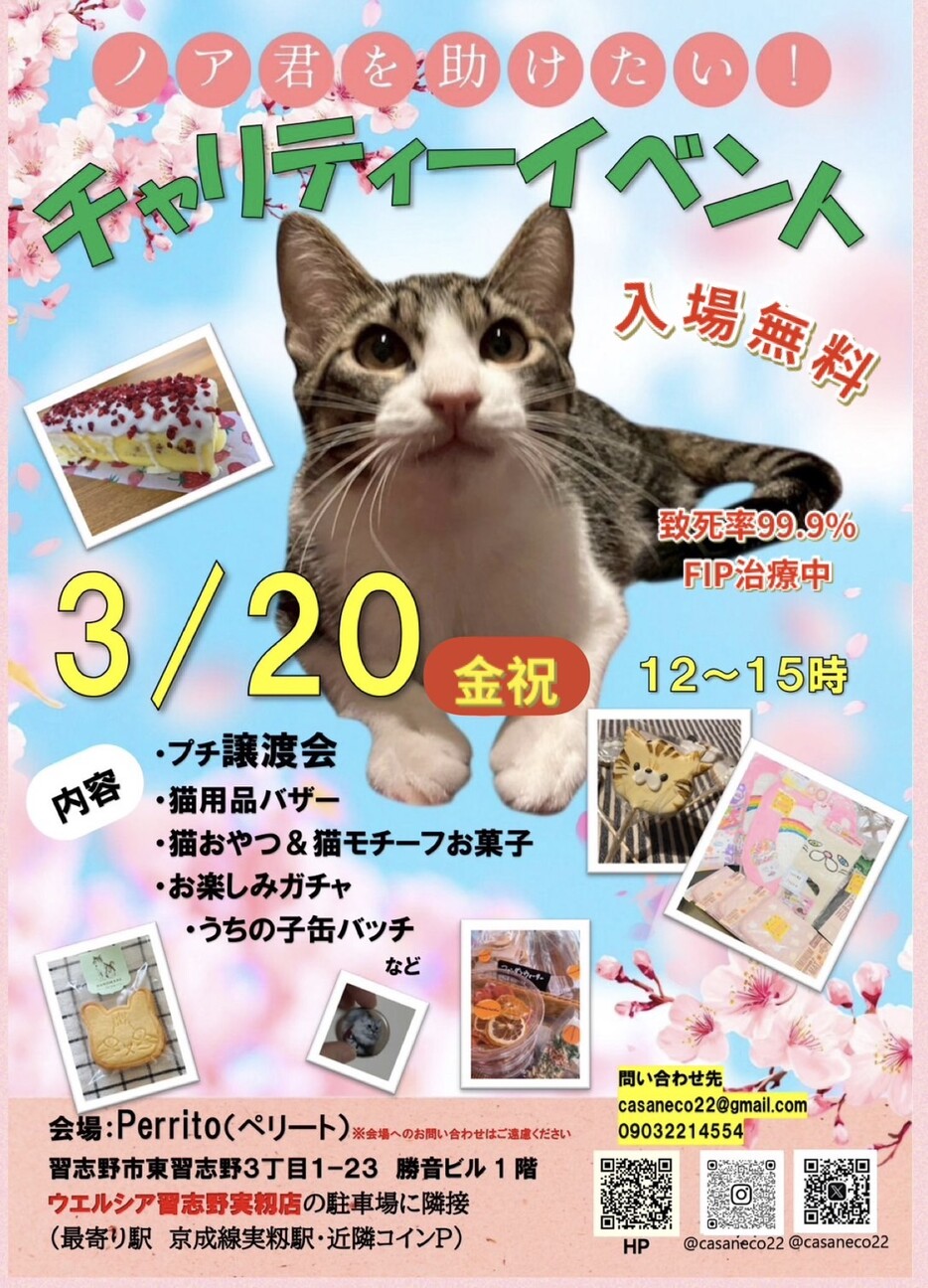 この度、FIP治療を頑張っているノアくんを応援するためのチャリティーイベントを開催いたします。