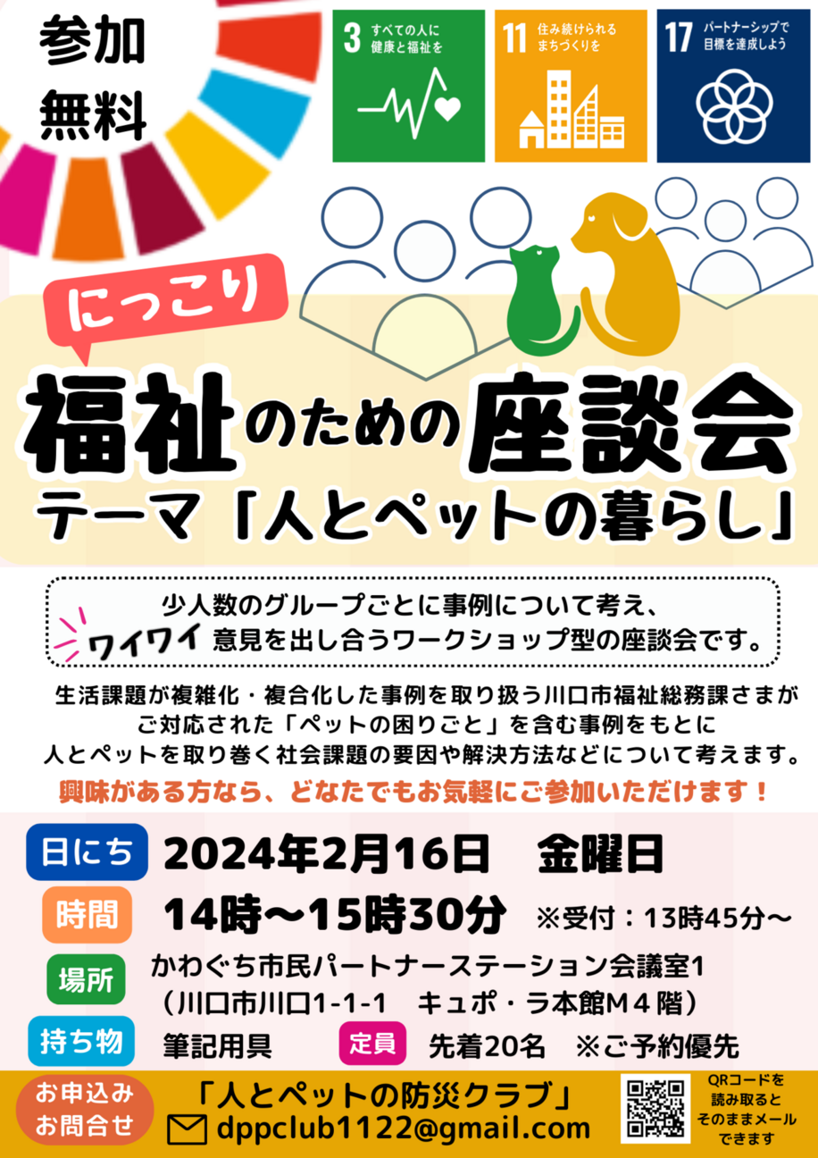 この座談会では、川口市福祉総務課と川口市保健所生活衛生課動物愛護係の職員様をお招きして、重層的支援体制整備事業についてのご講話も予定しています。