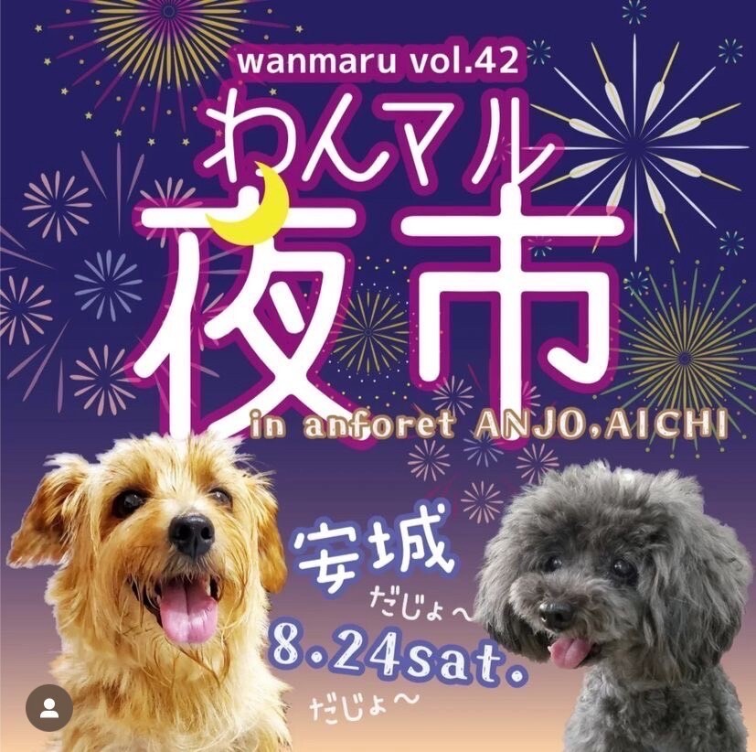可愛いワンコの雑貨やお洋服、おやつなどが沢山買えるワンコのマルシェ『わんマル夜市安城』に一般社団法人SORA小さな命を救う会もチャリティーイベントで参加させていただきます。