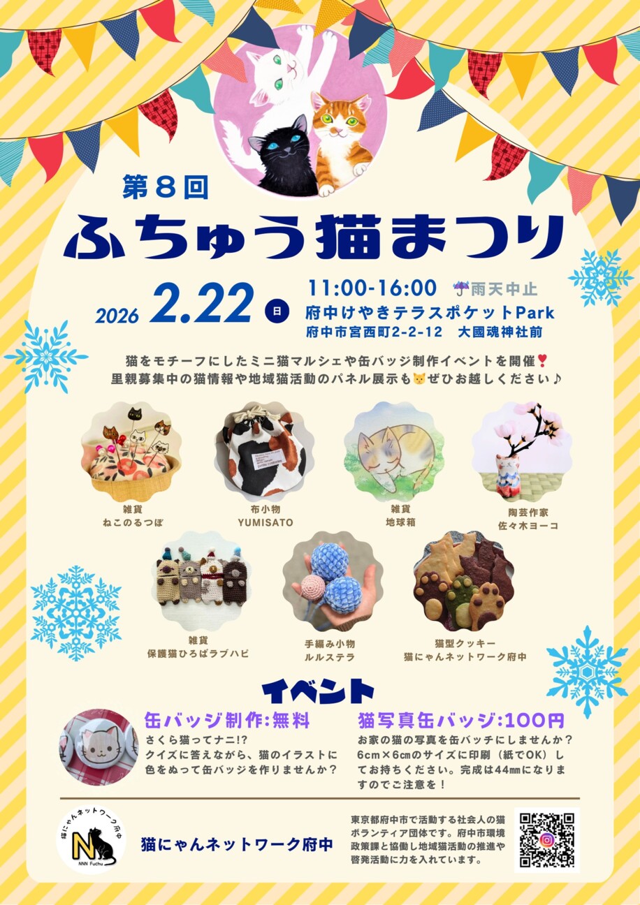 【保護猫の譲渡会】猫にゃんネットワーク府中主催の【保護猫の譲渡会】を開催します里親様を探している猫たちが多数参加しますので、是非お越しください------...