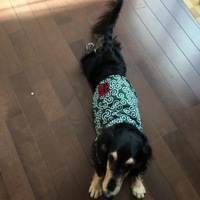 専属のドッグテーラーが作ってくれたアニマル柄のフードつきウェアです。