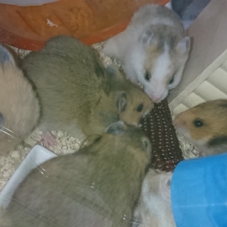 ジャンガリアンハムスター1匹と ゴールデンハムスター3匹のお世話をさせてもらってます。