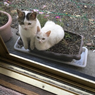 兄弟で仲良くうちの庭にいます。1匹猫ちゃんは買っているので、どなたか猫ちゃん大好きで愛に溢れて責任を持って里親になってください。お願いします