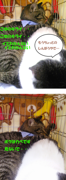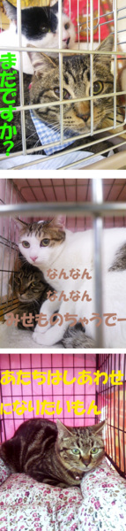 譲渡会が苦手な、とらちゃん♂は一生懸命、大福くんの背景になってました・・・