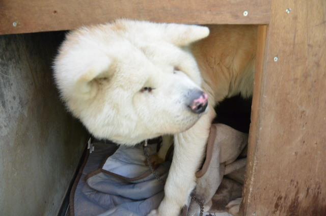 盲目の秋田犬、大五郎(雄、推定5歳位)です。