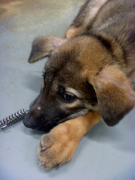お顔はとても愛らしく、倉敷野犬ブランド(?)の一つ、下津井(しもつい)犬の血を感じさせるシェパード系MIXくん。お鼻の周りが黒いのが特徴です。