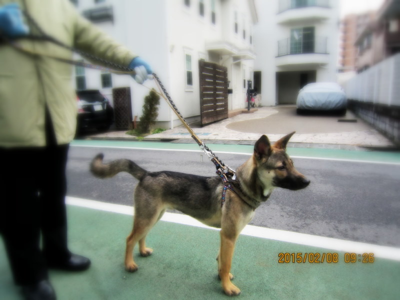 トレーナーさんもつけてくださり、お散歩訓練もすすみ、尻尾振りながら上手にお散歩できるそうです。