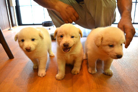 コロッコロの仔犬たち。とっても元気な女の子3頭です。