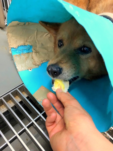 保護当初、骨が見えていたしし罠の傷も、職員さんの毎日の消毒とお薬塗布で、驚きの回復。もう大丈夫です!エリザベスカラーもそろそろ外れそう。