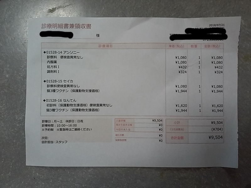 ちびっこ3人組、再度検便に行って来ました。 結果は3匹共にクリアです。良かった~西夏とアンソニーの真菌ハゲも、うっすら毛が生えてきてます。後もう少し! アンソニーの喉の炎症も良くなってるみたいで、念のため、もう1クールだけ薬を飲んで終わりになりそうです。嬉しいー。 病院に行く直前、西夏と南天の2回目のワクチンが打てる事に気付きました。ワクチン接種してもらい、これでもう通院しなくて良いはず!いっぺんに用事が済みました。暑い中に通院は、人も猫も負担になります。ホッとしました。