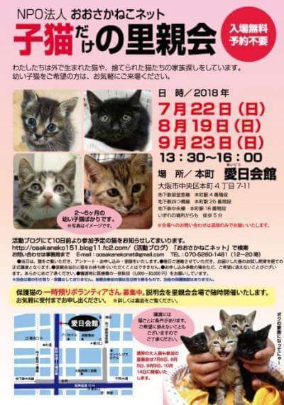 8月は『みやちか』さんも『おおさかねこネット』さんも里親会が同日で、そこには間に合いそうになく、出れる里親会がないと思い、参加を諦めていました。一つ前の投稿でもそのように記載しました。が、あったんです!目指せそうな里親会が。 同じく『おおさかねこネット』さんの里親会なのですが、生後6ヵ月までの子猫のみ参加出来る子猫の為の里親会です。これなら、南天の真菌ハゲも治ってる事でしょう!生後6ヵ月、、、アンソニーもギリ参加出来るはず。 保護主さんから、この8月19日を目指しましょう!と連絡を頂きました。 出ます!『おおさかねこネット』さんです。よろしくお願いします!