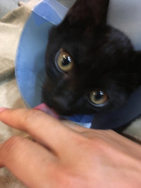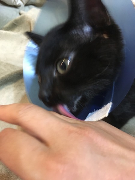 ちなみに、カラーつけてた時もでしたが、今でも頭を撫でていると、お返しーと言わんばかりに舐め返されます。