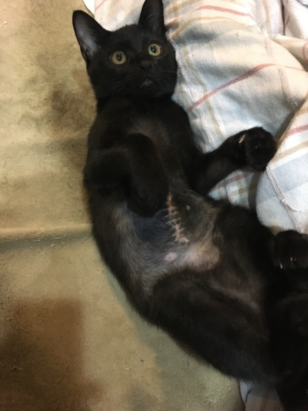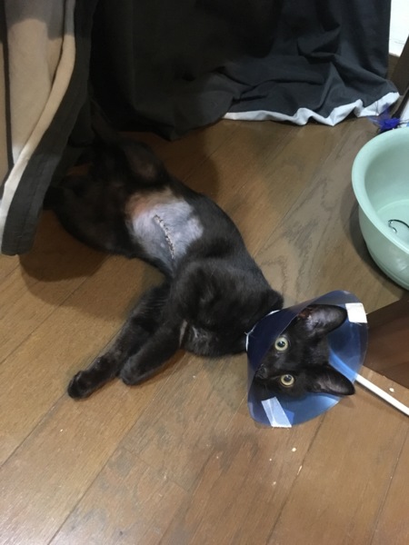 手術のためにお腹の毛を剃られたちっこいの。 だいぶ毛が伸びて腹黒くなってきました。 もっと毛が生え揃えば傷跡も殆ど目立たなくなるでしょう。