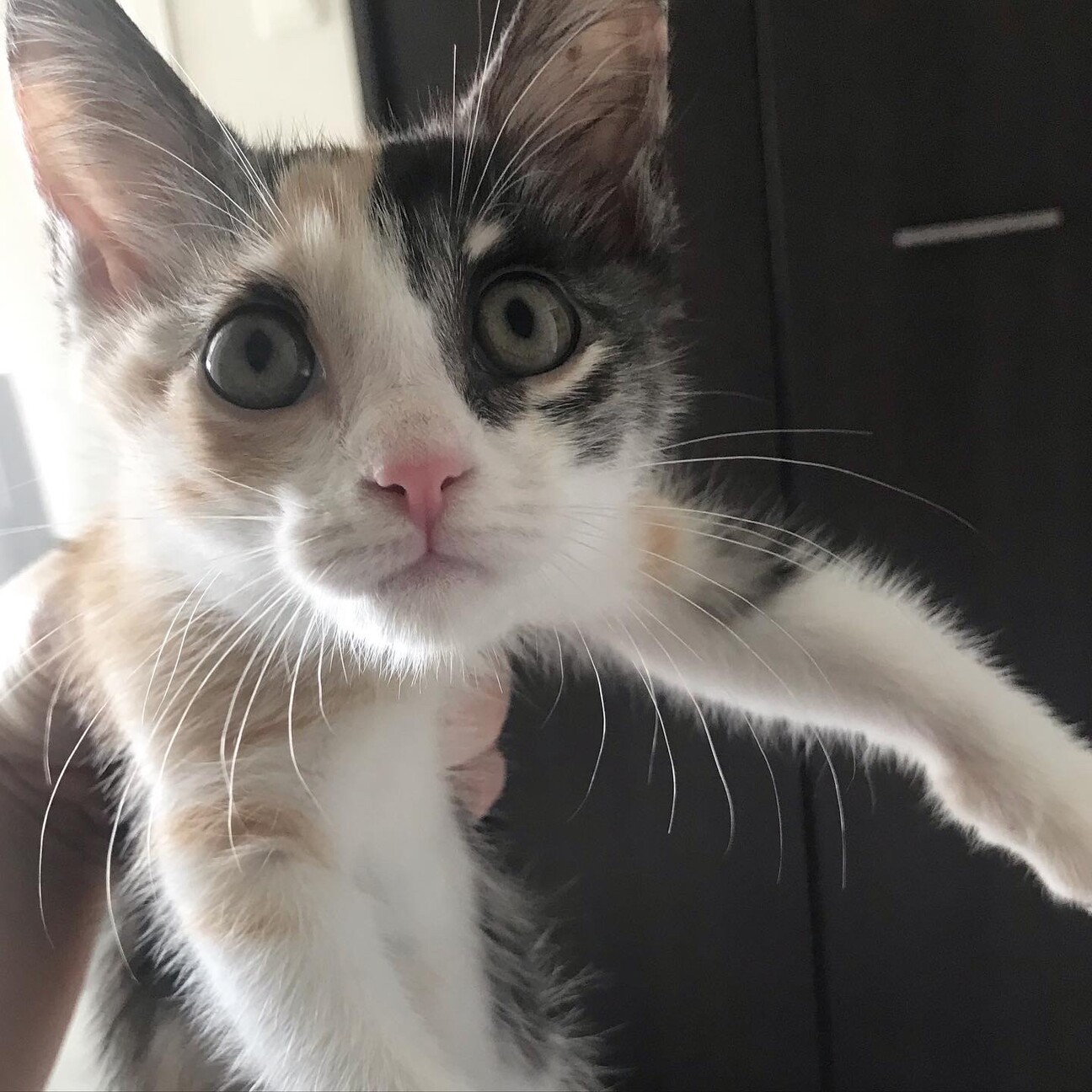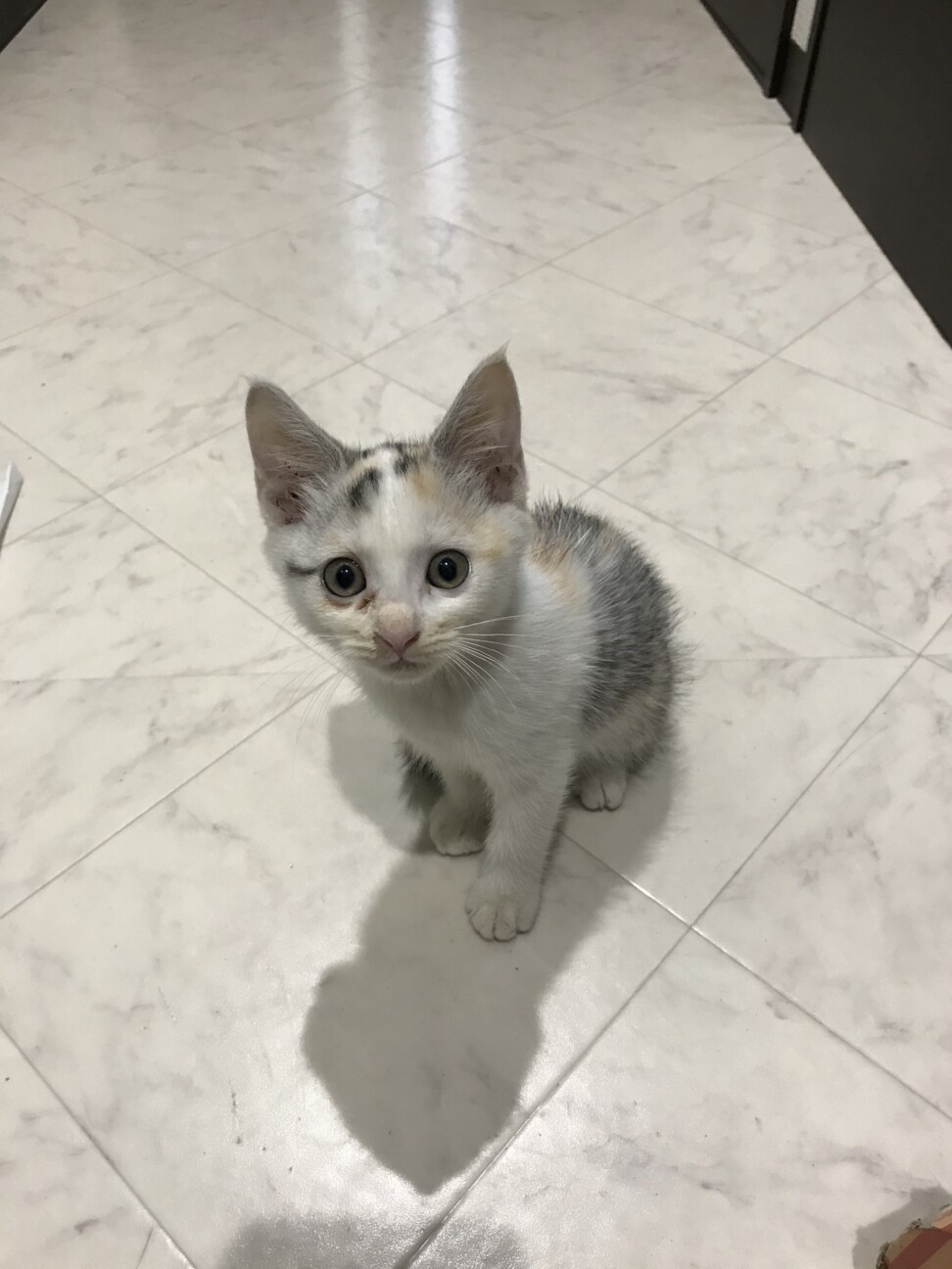 1枚目の画像の子は9月の頭に保護した三毛、子猫 現在、月齢で2ヶ月くらい。 2枚目の画像の子は9月18日に保護した白トビの子猫 こちらも月齢で2ヶ月からい。 どちらも懐っこい子で保護した時からすぐに喉を鳴らして甘えて来ます。 どちらも女の子。 血液検査ができる時期まで 隔離しながらですがゆっくりと過ごさせてあげます。 いい家族に迎え入れてもらいたい… 里親募集中です。