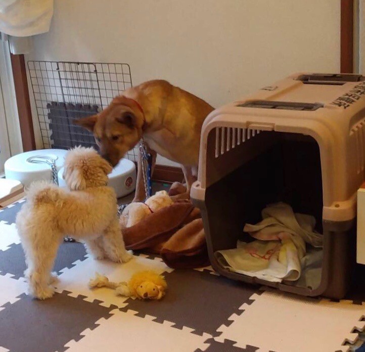 かわいいアップのふくたけ君、先住ワンコ君と楽しそうに遊ぶ動画やお写真が届いて感動しました。