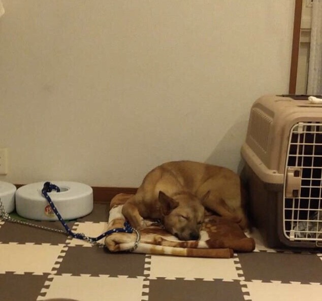 倉敷市保健所からトライアルに出ていた、断脚した野犬うめたけ君に