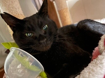他の子に仕掛けた捕獲器に入っていた黒猫ジジ。痩せていてまだ若いかと思いましたが 実は当時8歳くらいのシニア!