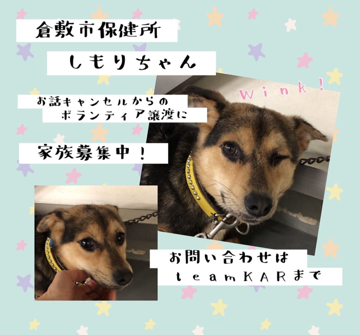 #倉敷市保健所 #里親募集 #ボランティア譲渡 #トライアル出発 #teamKAR