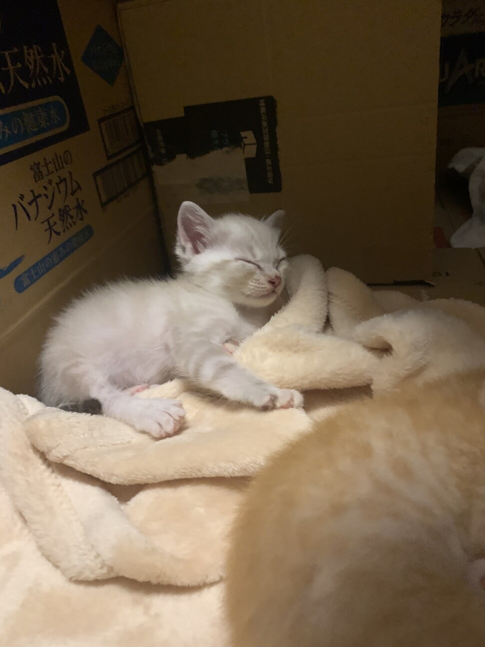寝る前はまめちゃんのおなかにぐいぐいしてます。