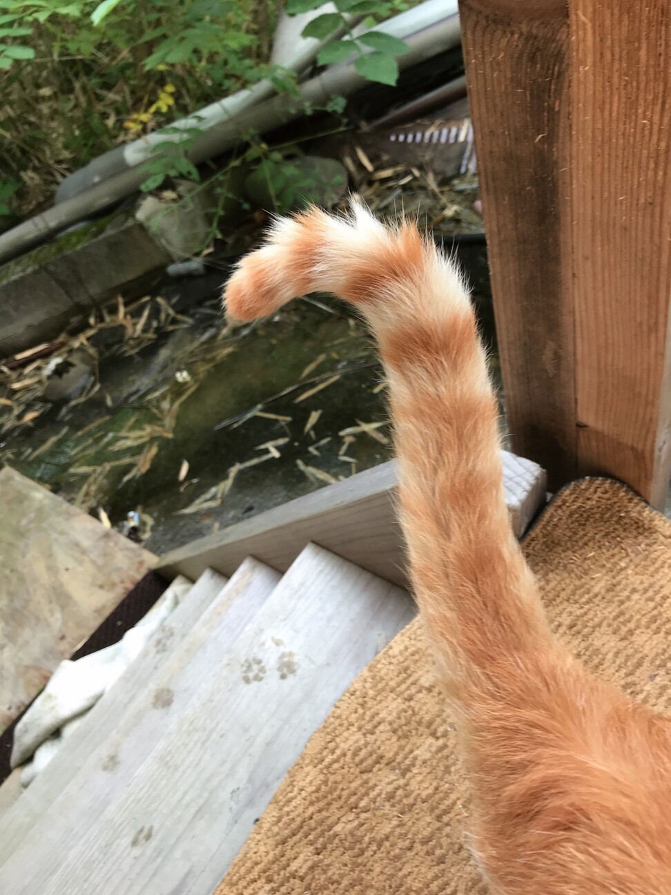 いつも曲がっていると幸運を引っ掛けるといわれるカギしっぽですが茶色ちゃんは気分次第で幸運を引っ掛けてくれる猫ちゃんかな?