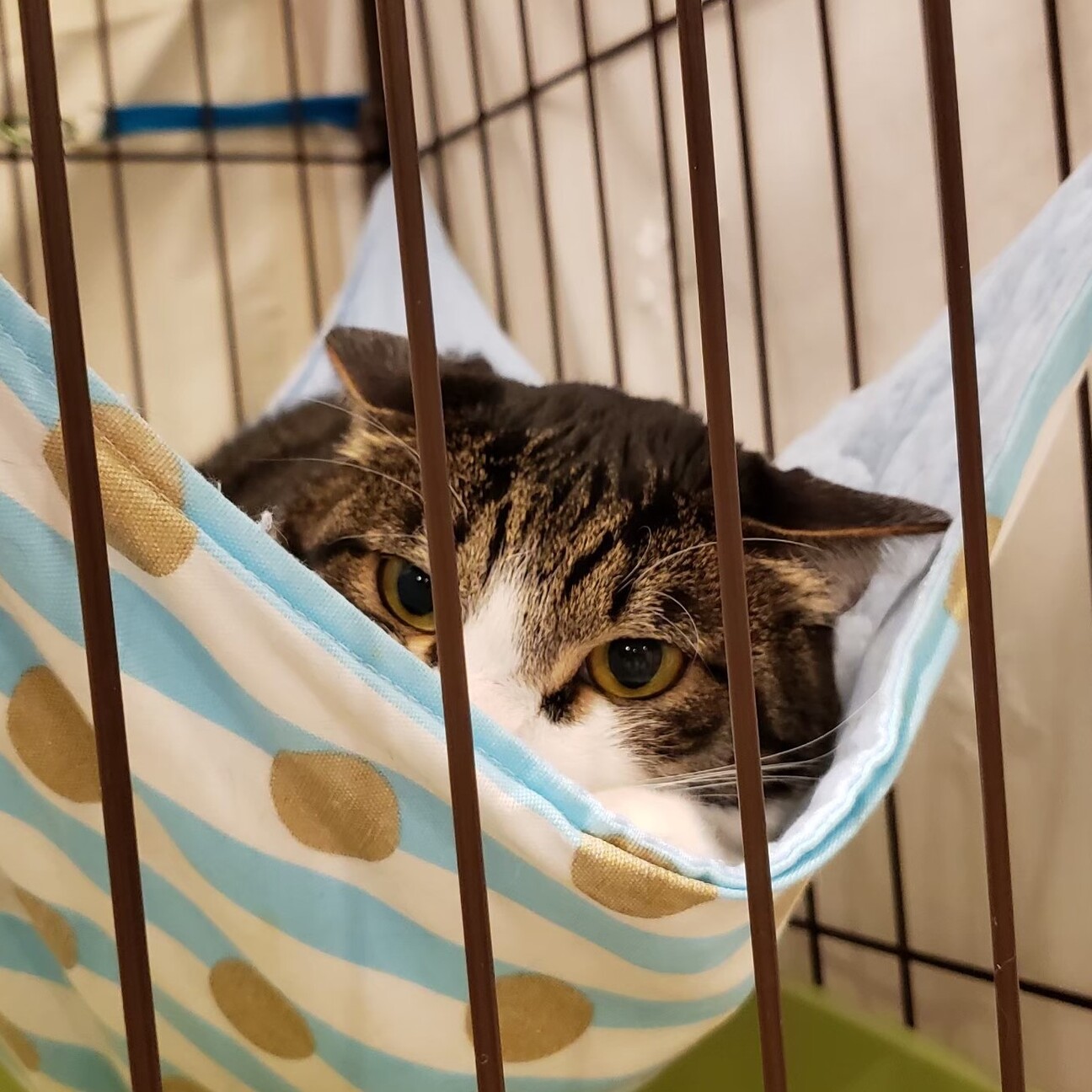 イカ耳になりハンモックに身をひそめるあられくん