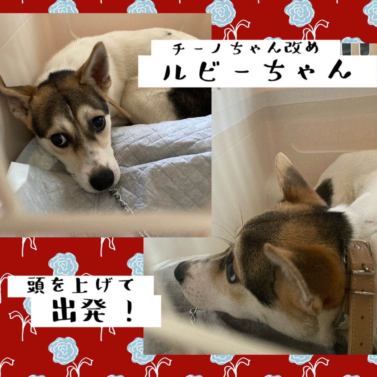 そして、本日お見合いの運びとなりました。おもらしはあるだろうという覚悟の上でしたが、驚くことにとても落ち着いて譲渡審査に向かうことができました。おもらしなしです!カプカプすることなく、当たり前のように首輪交換、さらにご準備くださっていたバリケン(クレート)に自ら入り、お迎えに来てくださったご家族の様子を垣間見る余裕!チーノちゃんなりに、何か感じたものがあったのかもしれません。お顔を隅っこに擦り付けるようにして隠すのではなく、頭を上げて新しいおうちに向け出発です!先住ワンコはチーノちゃんに似ているハスキーのお姉さんワンコ、ベルちゃん。チーノちゃんと仲良くなれますように。