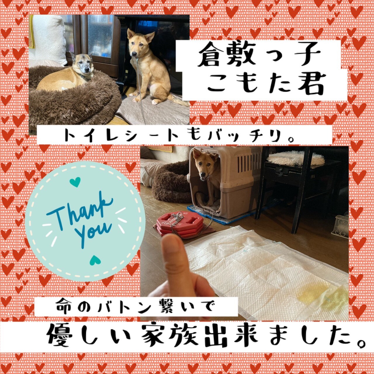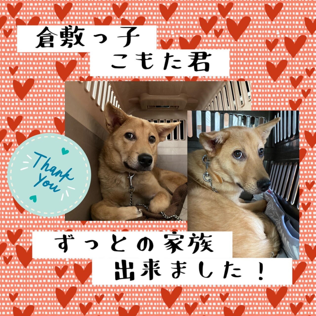 今、まだおうちに向かう車の中で、ドキドキしているかもしれない、こもた君ですが、近い将来、また幸せ便りをお伝えできるのではないかと思います。