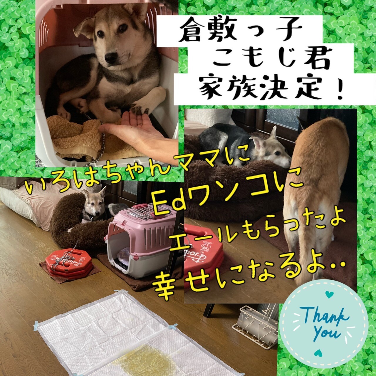 たくさんの方の応援、保健所職員さんとボランティアメンバーとの命のバトンで、こもじ君にやさしい家族ができました。これはゴールでなくてスタート。近い将来、こもじ君の幸せ便りをご報告できると信じています。本当に、本当にありがとうございました。