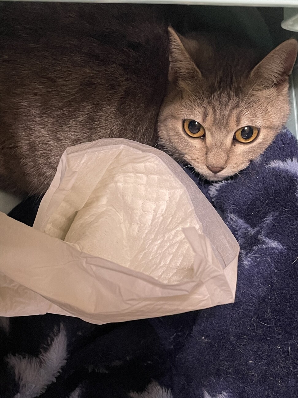 保護依頼が来たので急遽保護しました! 人懐っこい性格だけど慣れるまで少し時間がかかると聞いていたのですが… 全然触らせてくれるし保護した次の日の夜には ゴロゴロ喉を鳴らして近寄ってきてくれて! ご飯も食べてくれるしお水は飲んでるところ確認できてないけれど… あとは、検査に行ってみてトイレを覚えさせて…ってところかなぁ。 里親さん見つかりますように…!!!