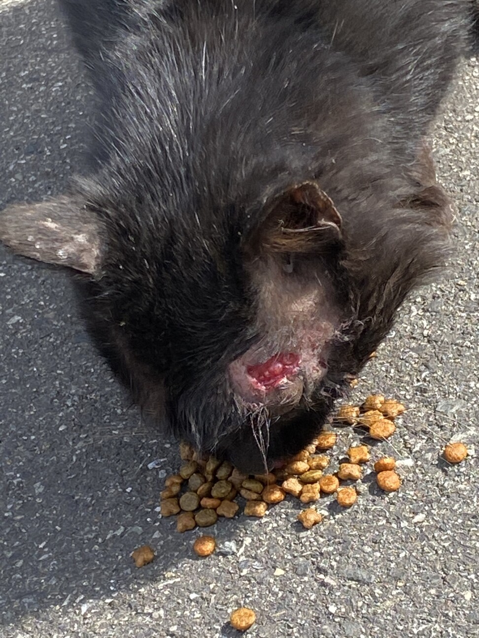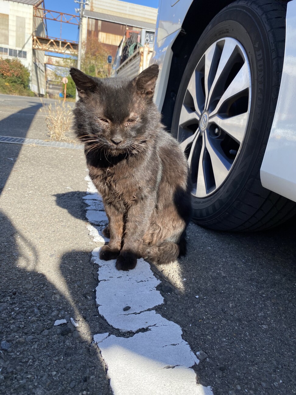 そんな時、ずっとご飯をあげていた黒猫ちゃんが大ケガをしてやってきました。無我夢中で車の中に乗せ、病院に連れていこうとしました。毎日触れてたからできるだろう、と。