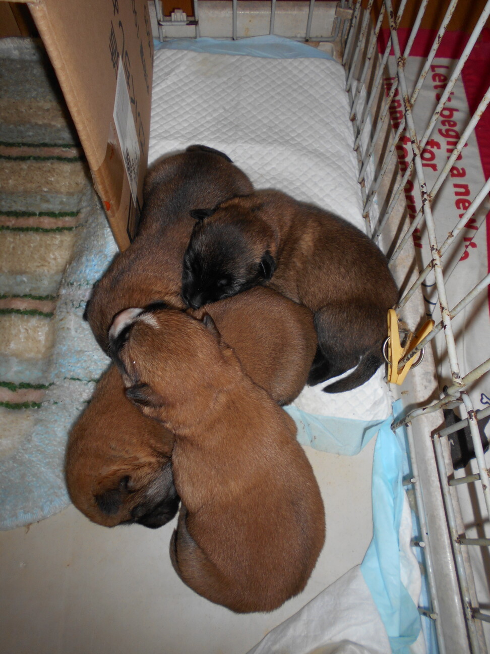 6月7日に生後10日くらいで保護されたよ。 男の子2匹 女の子2匹の兄弟。体重は500~600g。ちっちゃいよ。 その日の午後 竹原ワンコが迎えに来たよ。 1日に6回ミルクを飲んでいるよ。 ミルクの時間になると4匹で大合唱するよ。 ほ乳器から上手に飲むので、竹原ワンコが嬉しそうにしているよ。 大きくなって、優しい家族が迎えに来てくれますように。