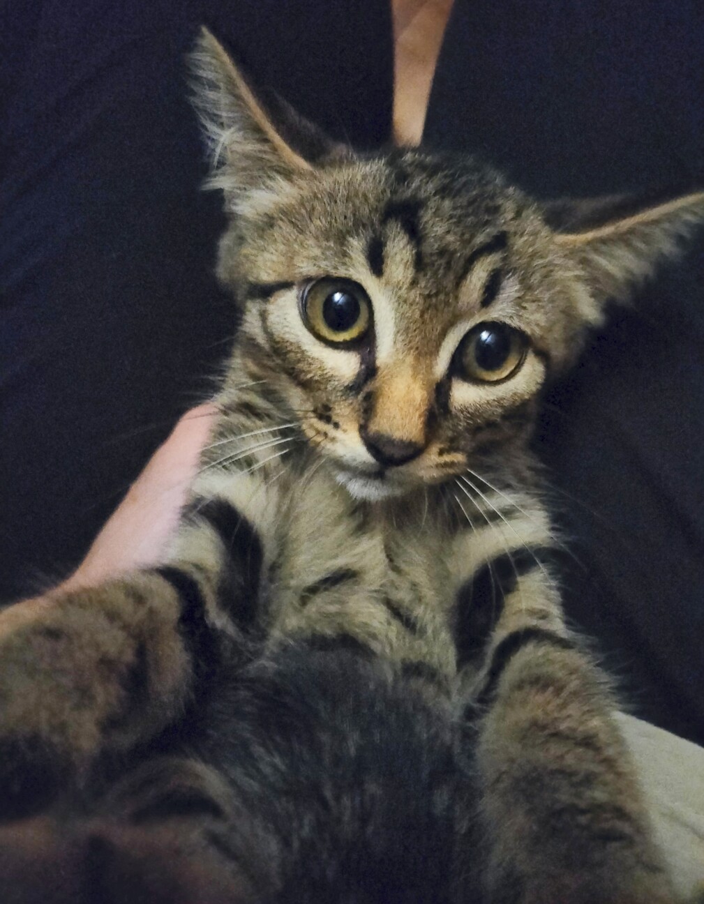 数日前から突然現れるようになったという子猫。 親猫を探して鳴くでもなく、ただお腹を空かせてご飯を食べにくるようになったそう。 依頼者自ら捕獲してくれたので、初期医療後そのままお預かりとなりました。 2ヶ月半くらいの男の子(エイズ・白血病陰性) 獣医さんも、この慣れ具合は野良猫ではないね、と。 栄養状態や体調もよく、不自然なくらい綺麗な子猫です。 捨てられた可能性が高いと思いますが、幸せになるチャンスを掴んだ「もぐるん」 早々に募集予定ですので、キジトラ男子がご希望の方はよろしくお願い致します!