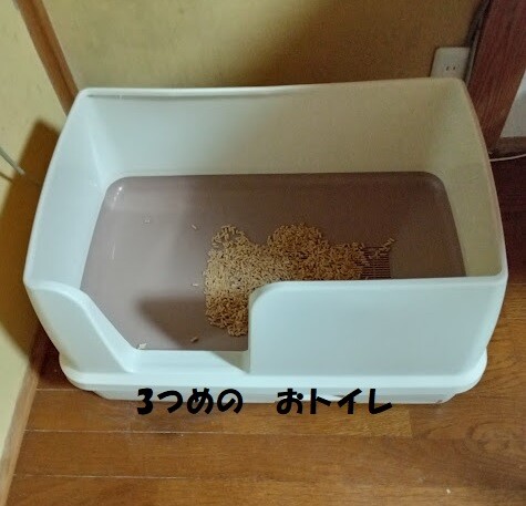 おトイレが2つから3つになったので掃除が増えましたが、保護するまでは外で好きなところをおトイレにしてた猫達ですから、それでも少ないんだろうな…。