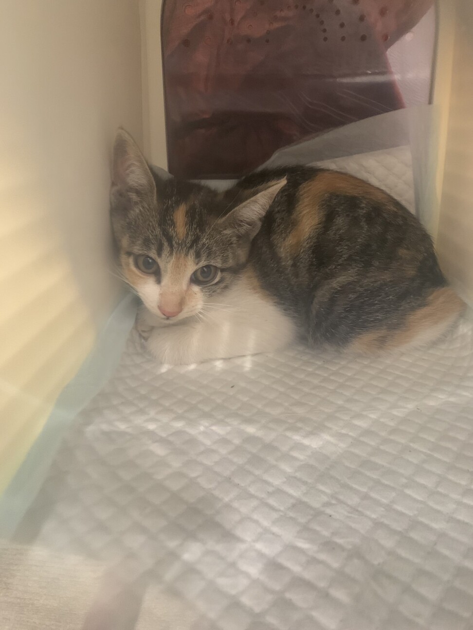 こんにちは。 細々と保護猫活動をしたいと思っているふくみっちゃんです。 この度、私の実家の方で1匹子猫が自宅付近で住み着いてしまいました。 その頃真夏でかなり暑い中、近くに母猫らしき猫ちゃんがお亡くなりになっているところを見かけてしまい、その子猫だろうという三毛猫ちゃんが頻繁に会いに来るようになりました。 炎天下の中で、とても痩せていた、そして上記の状況もあったので保護せねば…という気持ちで私の母から保護しました、と連絡が入りました。 このよう形で保護活動がスタートしました! 保護した猫ちゃんは、三毛猫のメスで推定2〜3ヶ月程度です(かわいい) また病院などのログは追ってアップします。