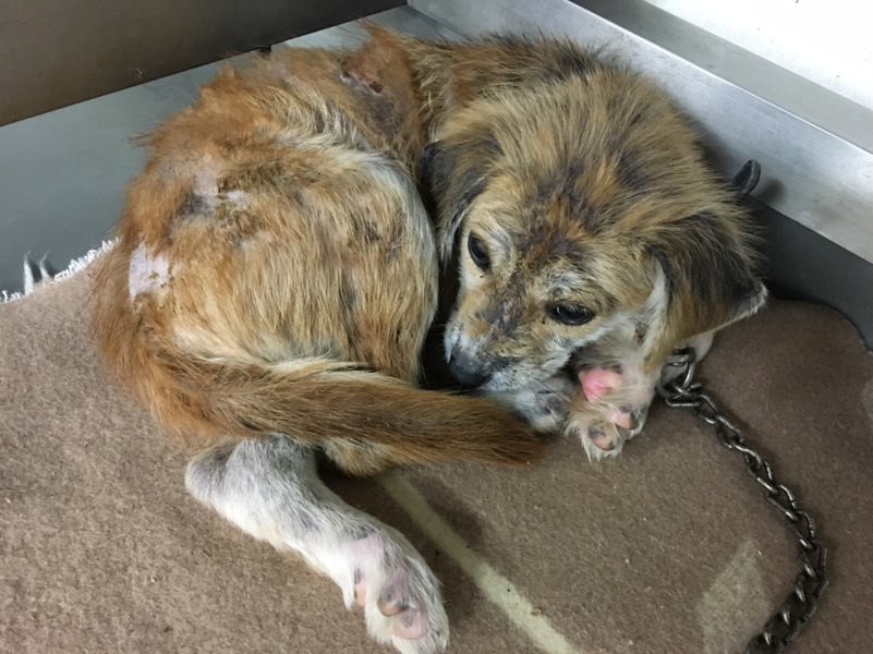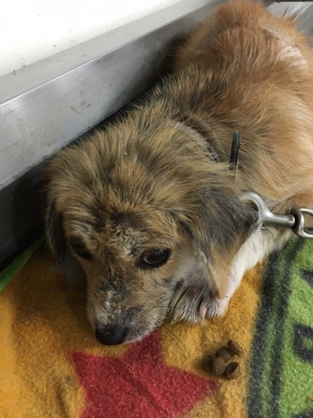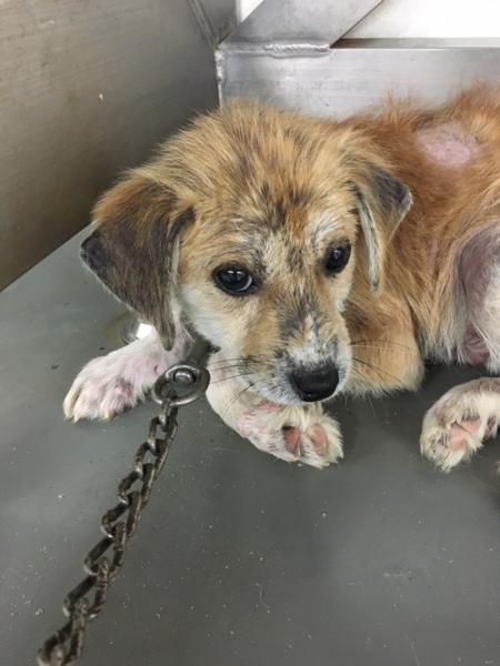 くりくりした黒い大きなお目目と垂れたお耳が愛らしいこですが、ご覧のように皮膚病が酷い子です。