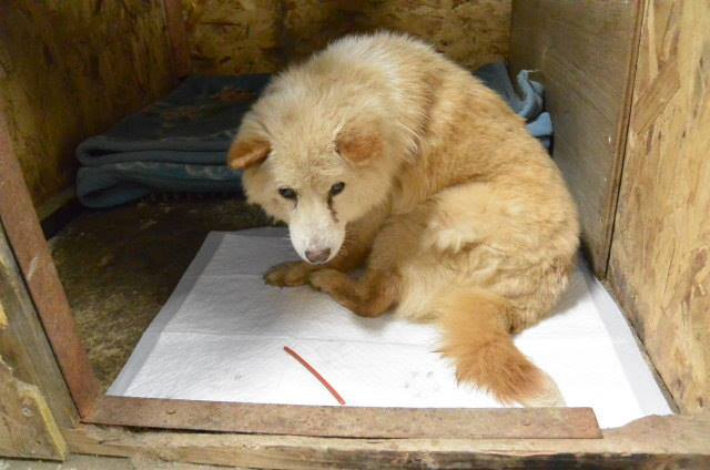 橋から投げ捨てられてしまったのか、両後ろ足を脱臼、肝臓と肺を損傷していました。