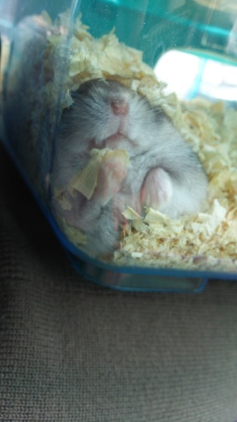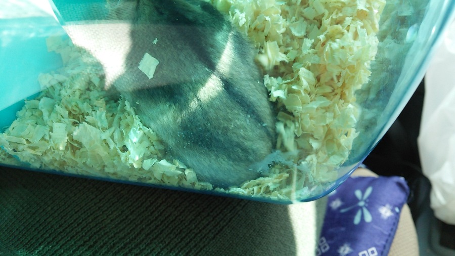 はじめての高速、怖かったのか走り回り掘りまくり、疲れて変な格好で寝てしまいました。