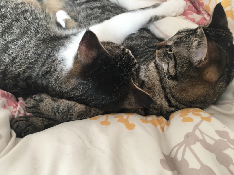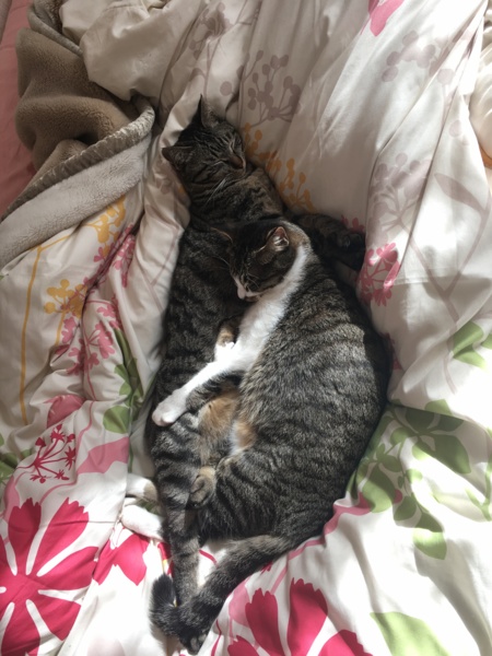 2月7日はマーチとタフィーがお家に来て3ヵ月。 立派なにゃんこに成長してくれています!! 最近家の2階を開放したので、更に行動範囲が広くなったマーフィーですが、お昼はだいたい寝室のベットの上で寝ています。 ラブラブなのでここでも一緒♡ さり気なくマーチはタフィーに腕枕…(*ˊૢᵕˋૢ*) いつも仲良くて見ていて癒される! …なので夜中の殺し合いのようなプロレスごっこは心臓に悪いです。。。