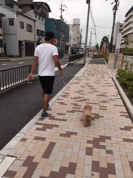彼女は繁殖犬だったらしくお散歩もしたことないと聞いてたので、お外は大丈夫かな?と連れ出してみると、なんと彼女は何事にも動じず笑てくてくてくてく我が道を行く!!