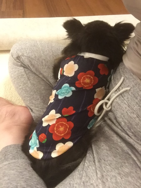 前の犬より体が大きいので、フィットする態勢を模索しながら抱っこしていたら、いつの間にか膝の上に乗る形となりました。ず〜っとそこから動かず、なでなでされていて……かわいさ倍増です!