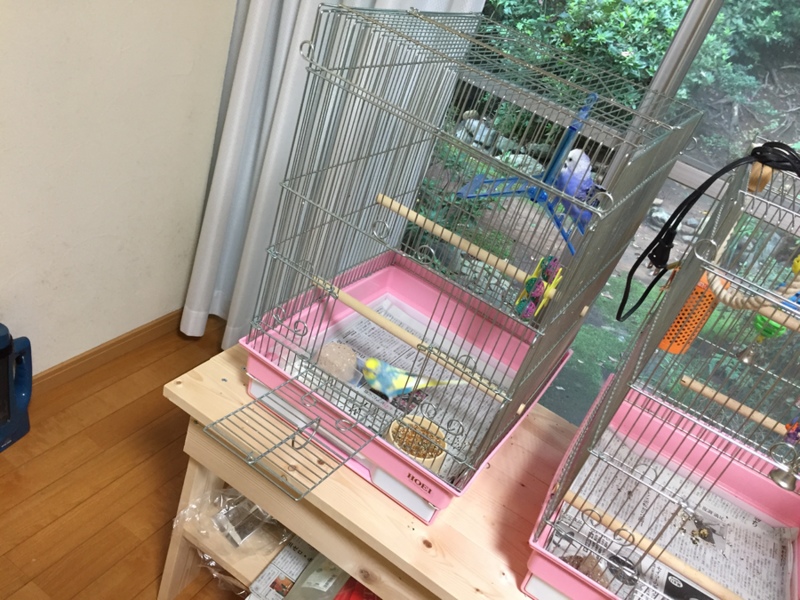 おとなりさんのピピが毎日のゲージ掃除のときに、そらのゲージにお邪魔するようになりました。