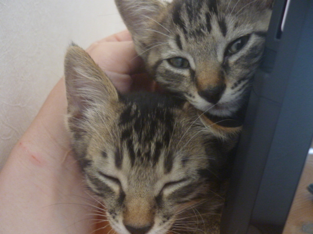 昨日から兄妹猫ちゃんの里親になりました☆ 元気でやんちゃな兄ちゃんは『まこ』 少し怖がりだけど美猫の妹ちゃんは『ねこ』 と名づけました(*´∀`)b 新しい環境にほんの少しおっかなびっくりな様子だけども… 私もちみ達が幸せに生きていけるように頑張るからね♪ この出会いにありがとう☆ 保護主さま、携わった関係者の皆さまにも感謝ですヽ(*´∀`)ノ