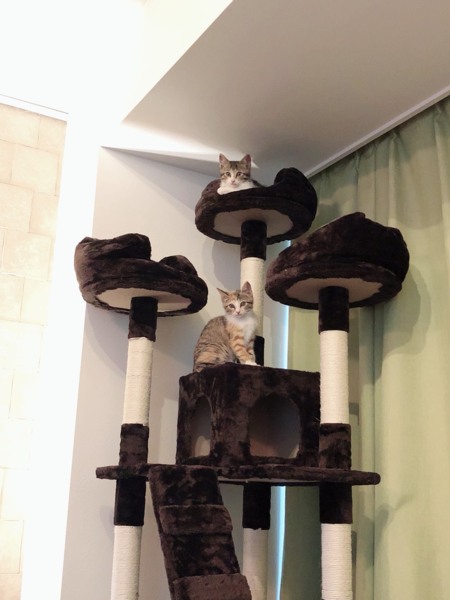 2018年6月、飯能市の里親様決まりました!! さばしろがぐり君・ミケがぐらちゃんです。 かわいいお名前つけていただきました。 天井まである大きなキャットタワーを用意してくださいました!! 仲良し美形兄妹の2匹(=^x^=) 一緒のおうちでとっても幸せです。