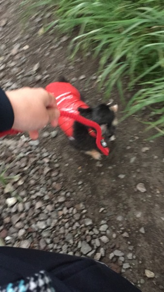 はじめは歩いてくれませんでしたが、程なくしてリードで歩くようになり、今ではてくてくと軽やかな足取りです!私の方を見て歩き、私が止まればくーちゃんも止まります。お散歩上手(≧∇≦)