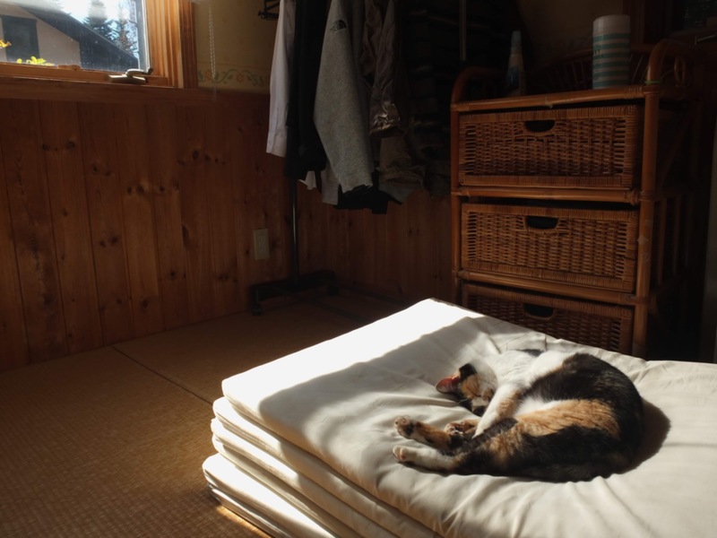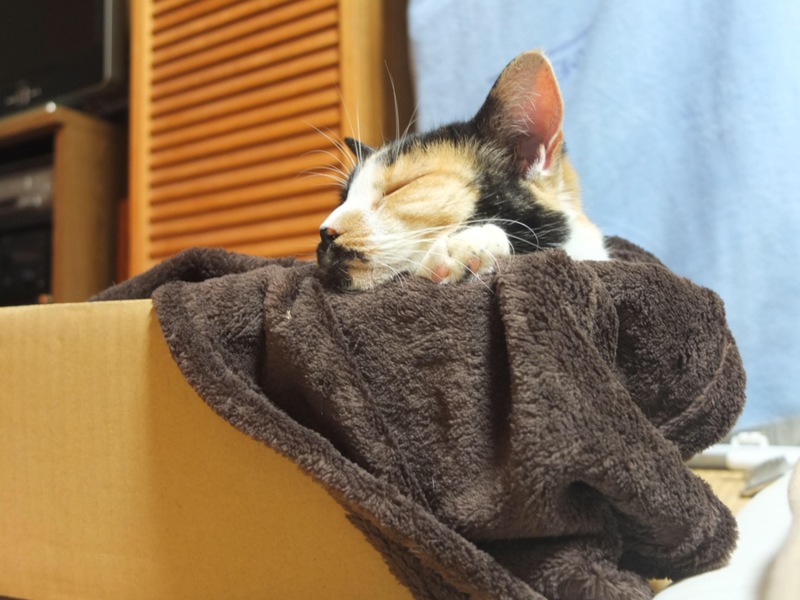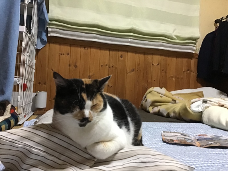 朝起きたら体の上に乗ってて苦しぃ… その他まくらや本のうえにも。