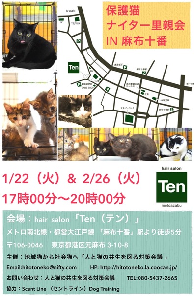 1月22日(火)地域猫から社会猫へ FIPフリー・麻布十番ナイター里親会